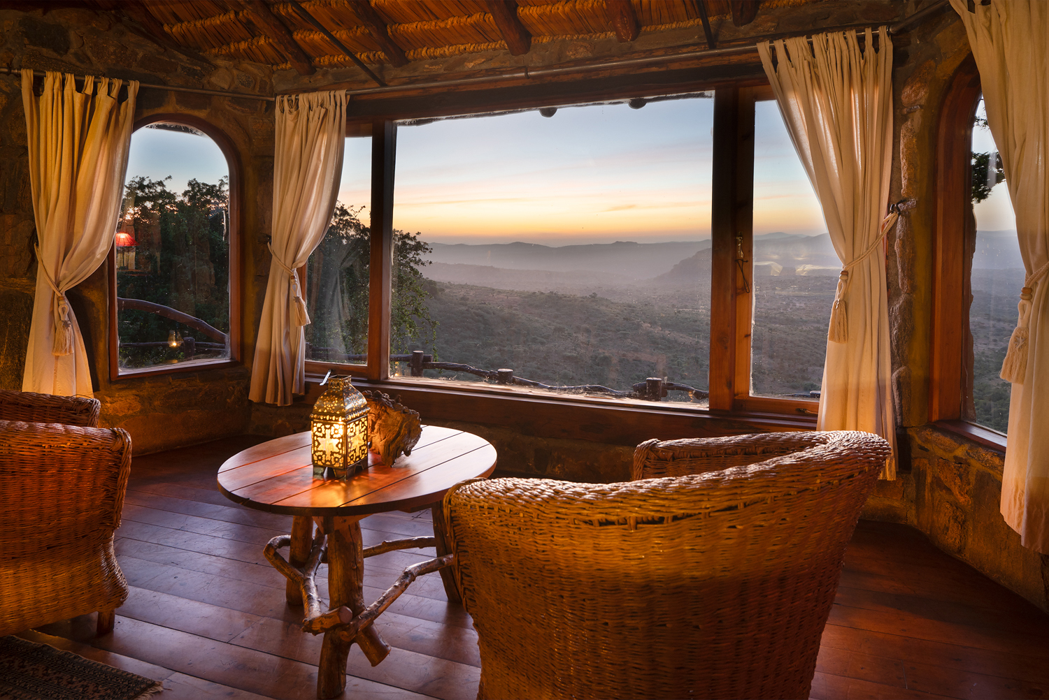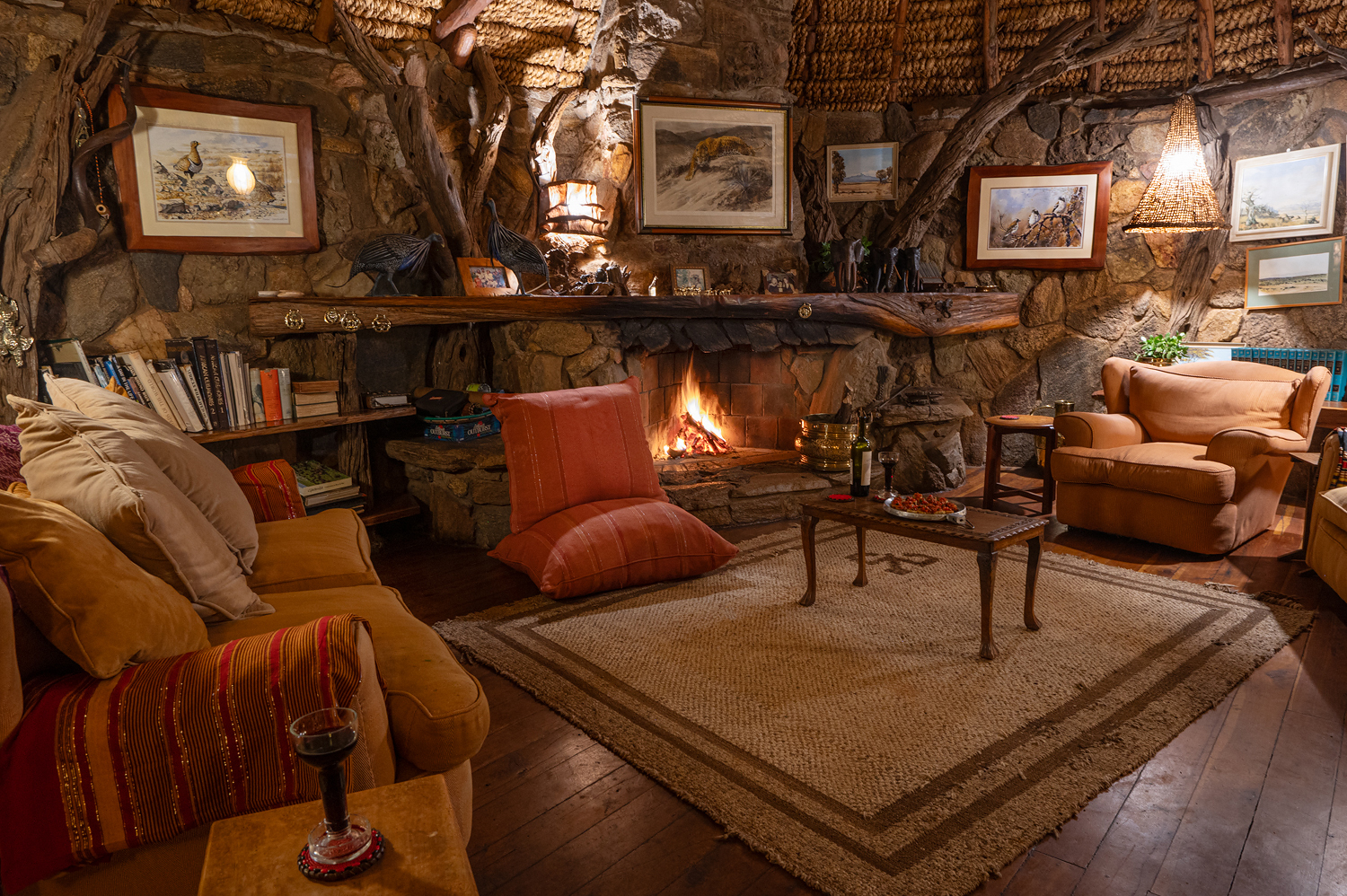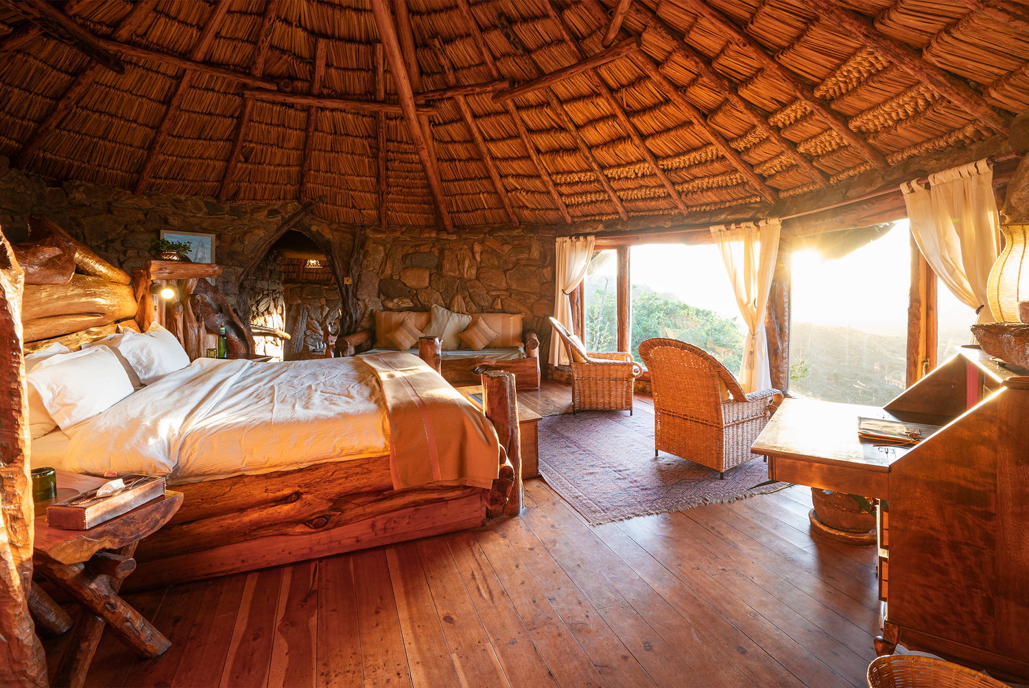 - Stone and thatch design built into the escarpment with stunning views
